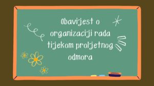Obavijest o organizacij rada tijekom proljetnog odmora