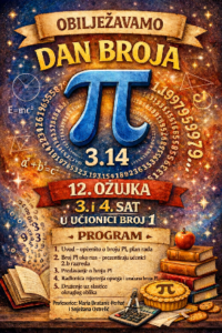 U mjesecu ožujku obilježava se Svjetski dan broja PI. Broj Pi (označavamo grčkim slovom π) predstavlja omjer opsega i promjera kružnice. Njegova vrijednost zaokružena na